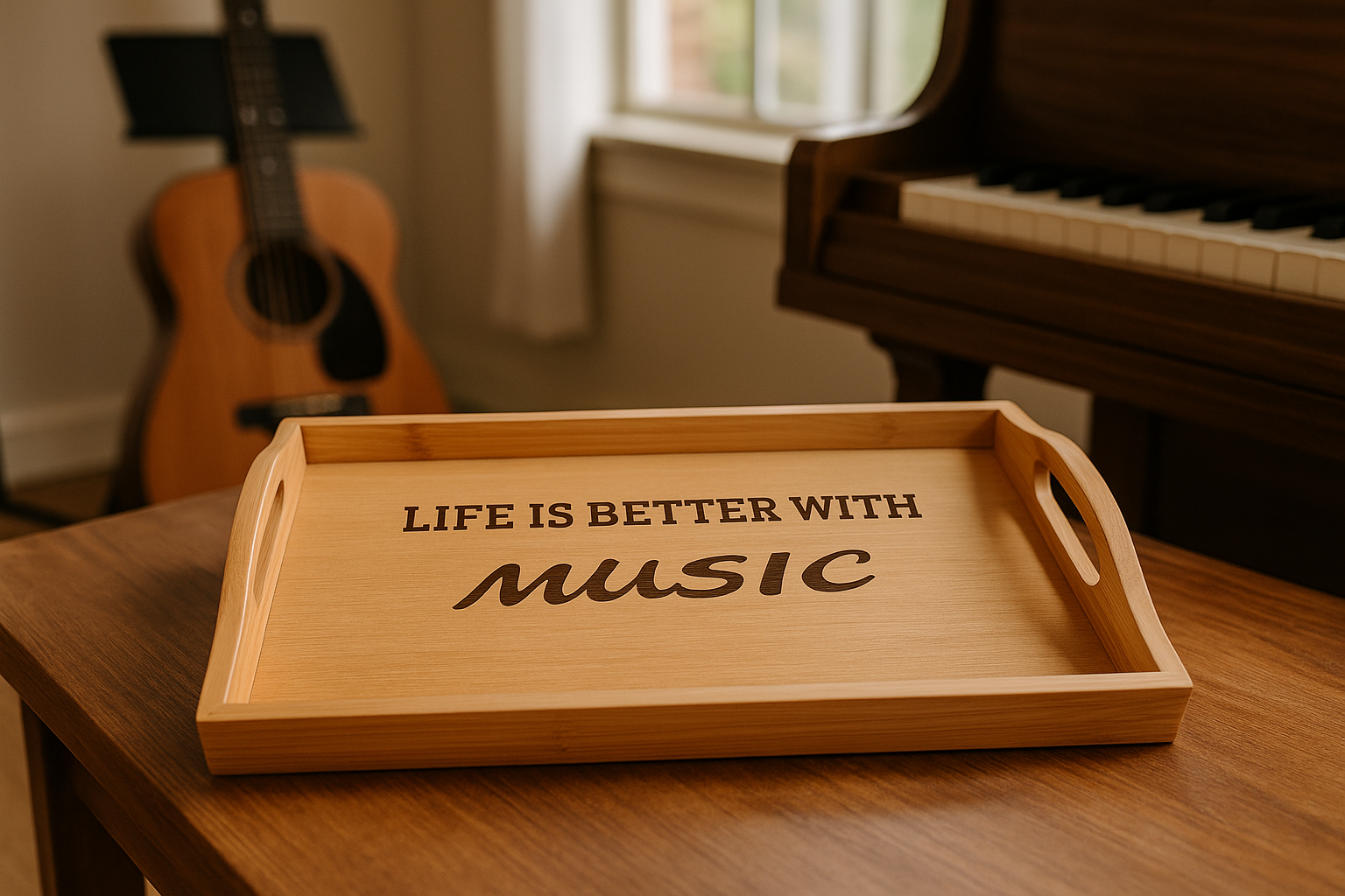 Whether you’re hosting guests or enjoying a quiet evening, this tray makes a statement: life truly is better with music.